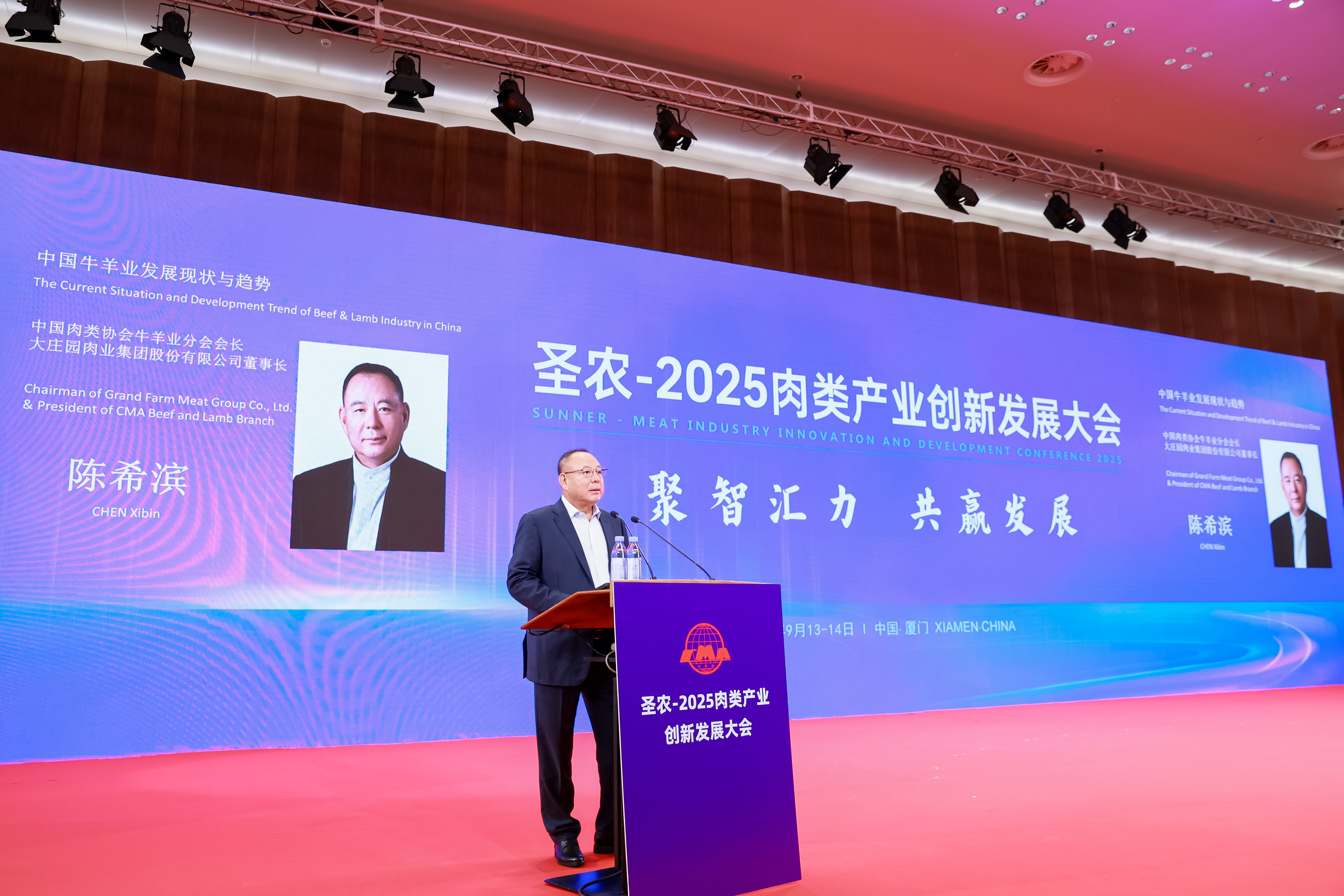 9月13日—17日,2025中國國際肉類產(chǎn)業(yè)周在福建廈門成功舉辦。大莊園集團(tuán)作為連續(xù)三屆中國牛羊肉協(xié)會會長單位,秉持行業(yè)引領(lǐng)者的責(zé)任與擔(dān)當(dāng)全程深度參與,與政府主管部門代表、國際機(jī)構(gòu)代表、國內(nèi)外行業(yè)專家、中國肉業(yè)M50成員企業(yè)決策者聚焦產(chǎn)業(yè)發(fā)展政策、行業(yè)動態(tài)趨勢、市場消費(fèi)變化、創(chuàng)新技術(shù)成果、合作共贏模式和服務(wù)貿(mào)易發(fā)展等方面,深入探討肉類產(chǎn)業(yè)高質(zhì)量可持續(xù)發(fā)展的新機(jī)遇與新挑戰(zhàn),為推動中國肉類產(chǎn)業(yè)高質(zhì)量發(fā)展注入強(qiáng)勁動力。